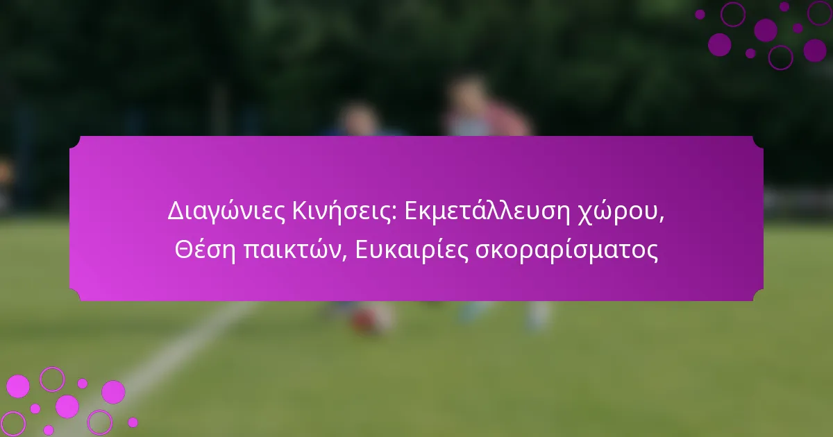 Για παράδειγμα, αν η μπάλα αλλάξει από την αριστερή πλευρά στη δεξιά, ένας επιθετικός που κάνει διαγώνια τρέξιμο μπορεί να βρεθεί σε ιδανική θέση για να παραλάβει μια πάσα. Αυτή η κίνηση όχι μόνο αυξάνει την πιθανότητα βολής προς το τέρμα αλλά και δημιουργεί ευκαιρίες για τους συμπαίκτες να συμμετάσχουν στην επίθεση.